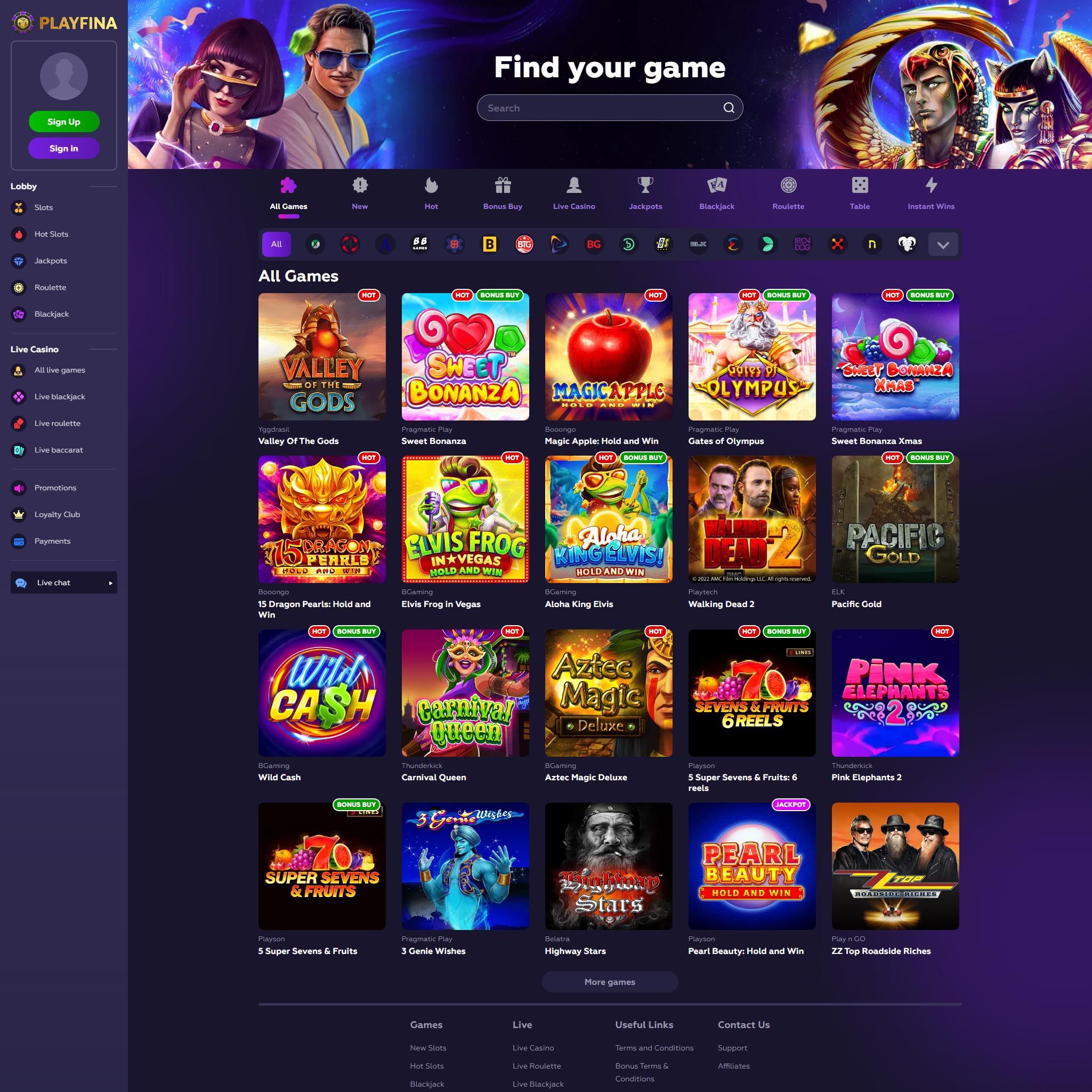Playfina is an online platform that offers a wide range of games, including slots, table games, and live casino games.
